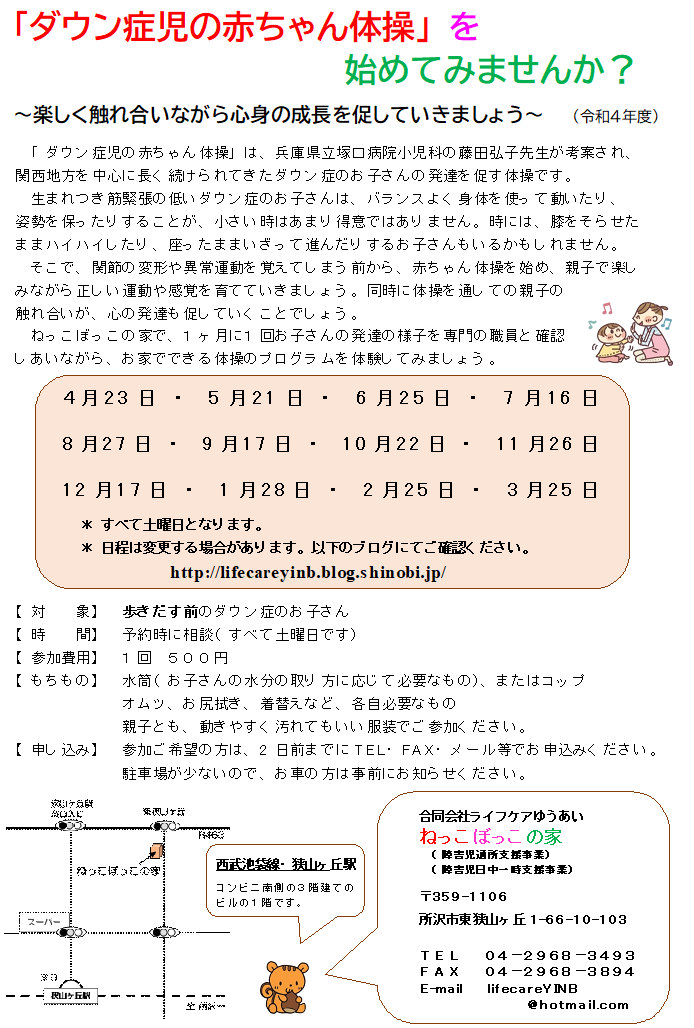 令和4年度 ダウン症児の赤ちゃん体操のご案内