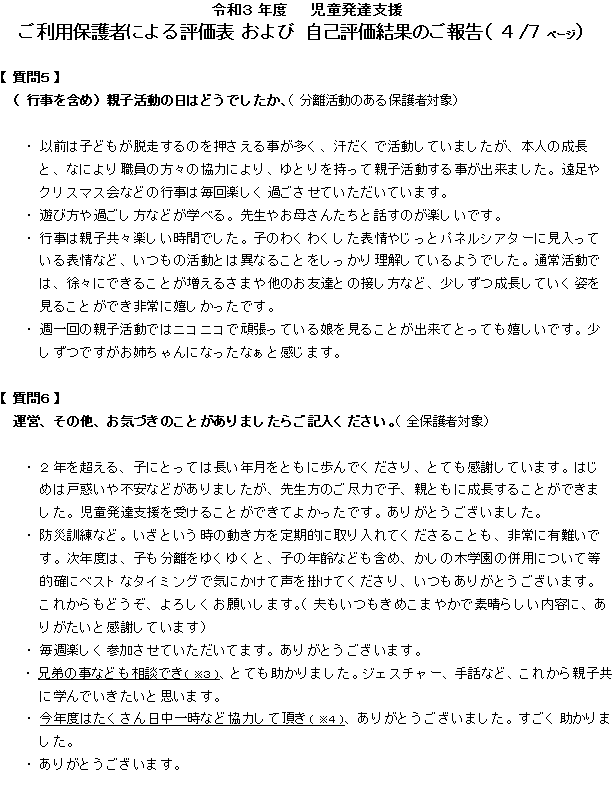 令和3年度 児童発達支援事業 評価結果④