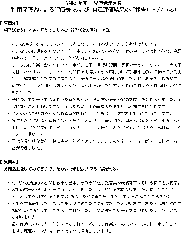 令和3年度 児童発達支援事業 評価結果③