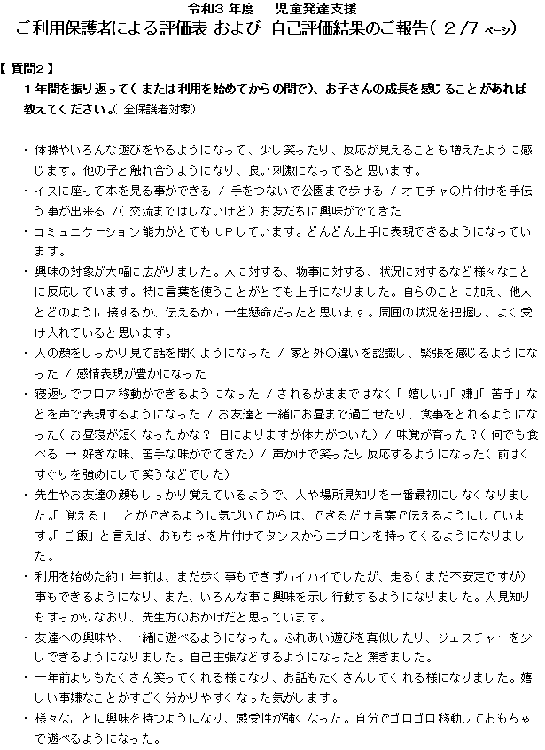 令和3年度 児童発達支援事業 評価結果②