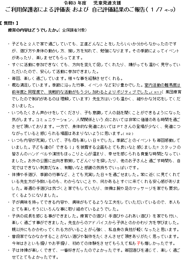 令和3年度 児童発達支援事業 評価結果①
